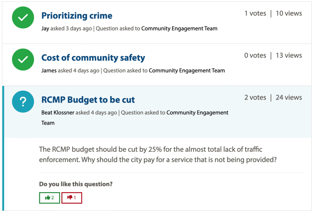 One of the main issues with the Let’s Talk site is the lack of engagement. Although questions are answered by the “Community Engagement Team”, that’s the end of the engagement. You can’t ask a follow up question, or comment on an answer that’s been given.