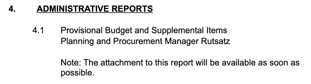 If you’re wondering what’s included in the upcoming budget, what supplemental items are included, or what the preliminary tax increase is, join the rest of us. That info isn’t available yet.