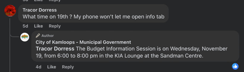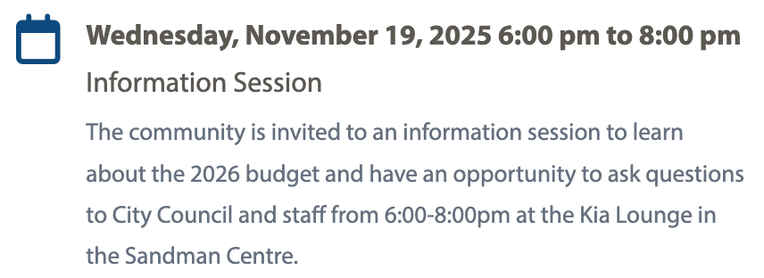 The City keeps telling the public to go to their Let’s Talk site, but that doesn’t seem to be catching on with the public. I checked out the Budget 2026 page Saturday night, and there wasn’t much to see.