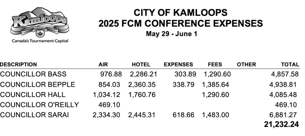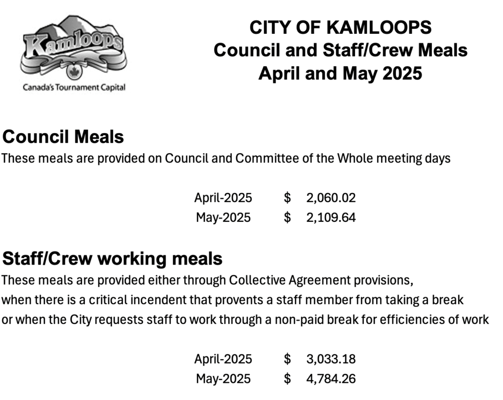 Kamloops citizens are burdened with outrageous property taxes, and most other expenses are increasing faster than their income. While many employees pack a lunch for work, the same isn’t true for Kamloops City Council. They enjoy free meals and trips at taxpayer expense.