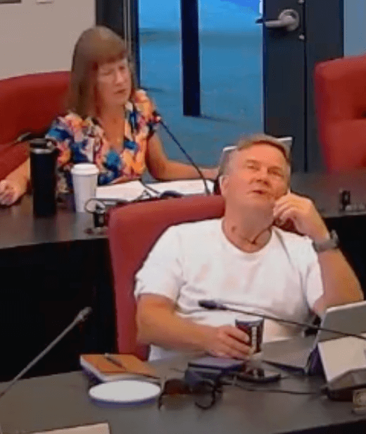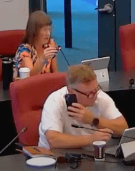 Just one day after the meeting referenced in our previous article, Councillor Kelly Hall is at it again. In the TNRD’s Policy and Governance Committee meeting on Wednesday, Sep 10, 2025, Hall was blatantly obvious in his lack of interest in the meeting.
