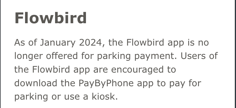 By now, I’m in the waiting area. I do some googling and stumble on the city parking page, where I see a notice that they have changed apps.